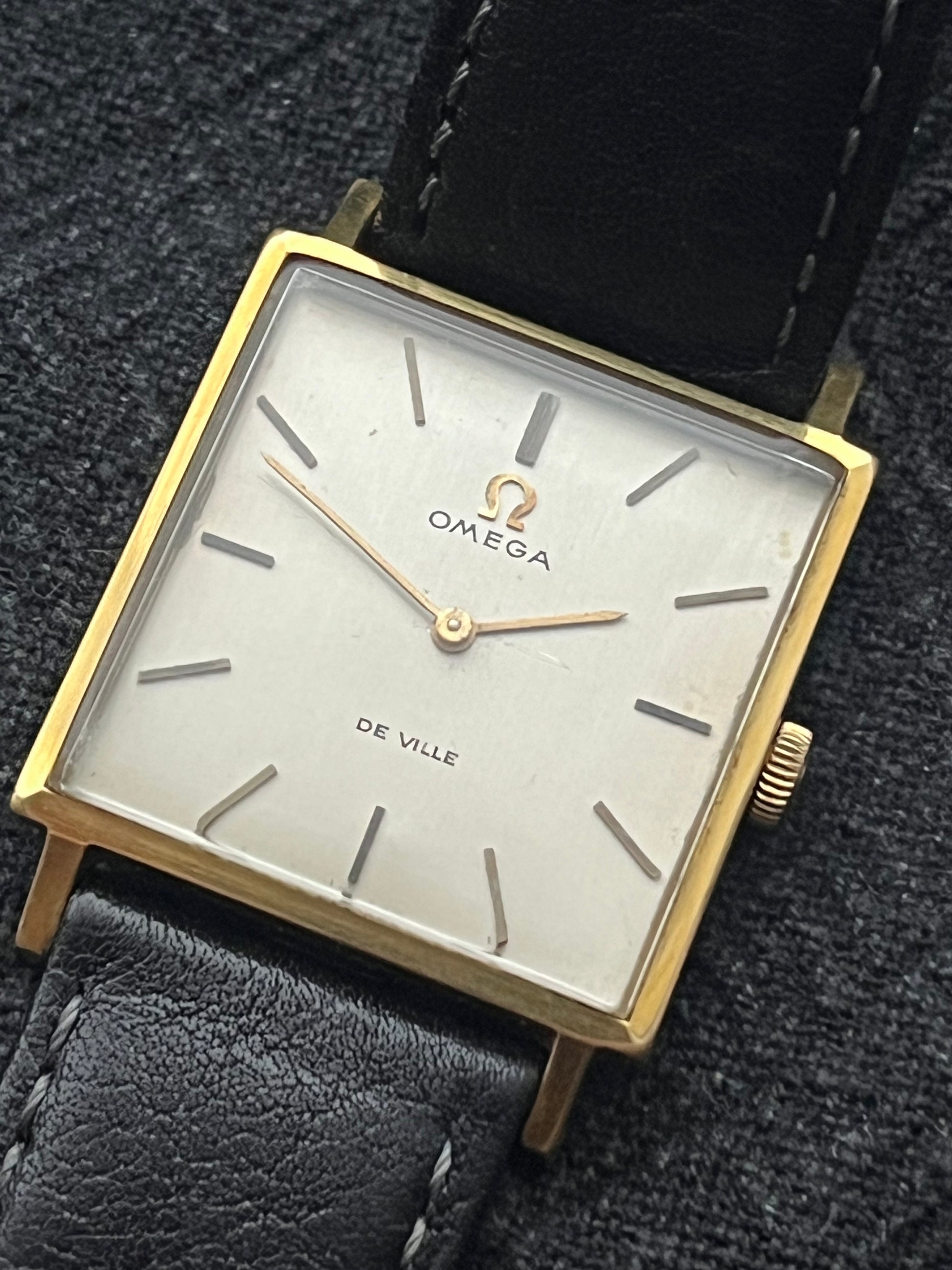 This is an incredible mens Omega De Ville which features a lovely cream gold look. The watch case is in fantastic original condition. on a leather strap, mechanical movement running great and comes with original box.