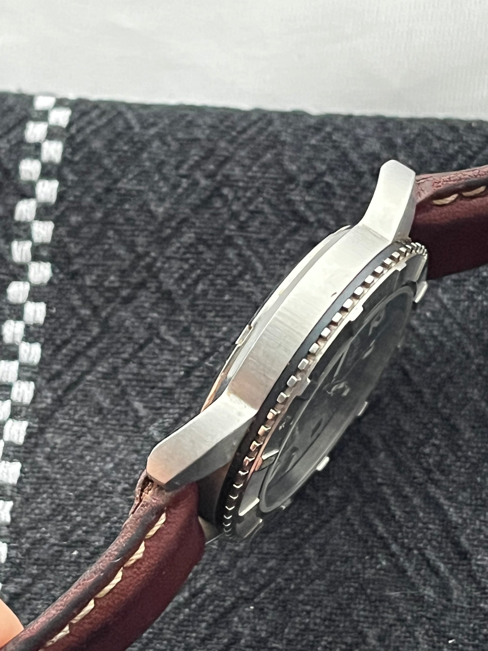 This is a mens rotary diver style watch with a Date window, screw down crown, 200m water resistance, rotating bezel. Clean two-tone look . It’s in great vintage condition. full stainless steel case & original leather strap & buckle. The hands are illuminous.