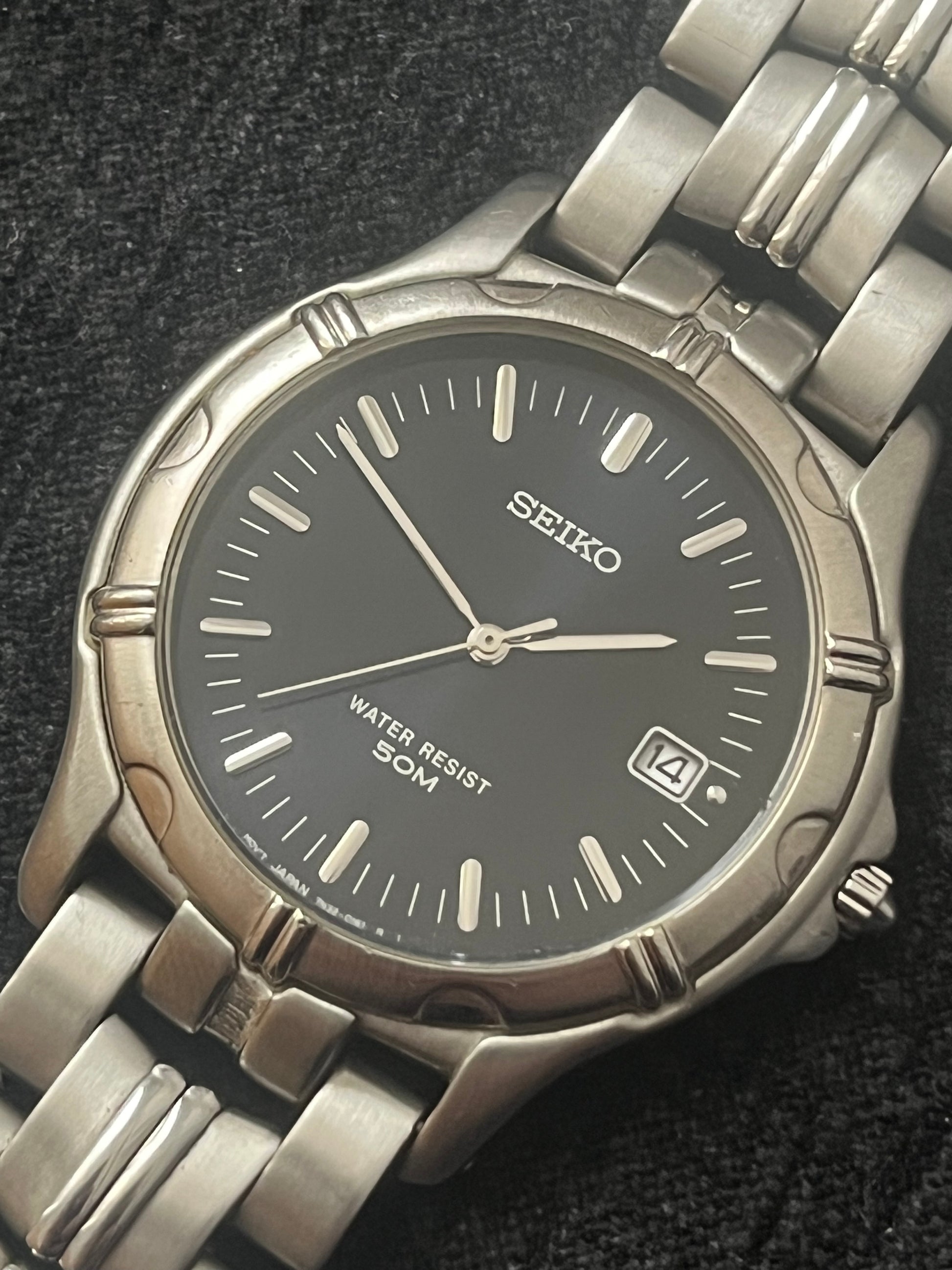 This is an classic mens seiko 7N32 date model with an eye catching dark blue dial . Produced from July 1990-2020. It’s in great vintage condition.