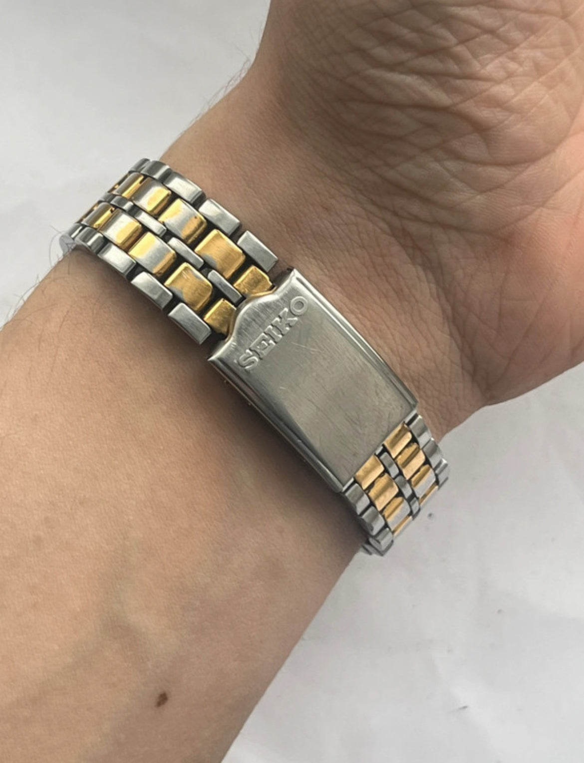 This is an incredible rare mens vintage seiko day date with the Royal Oak case. Produced from 1995-2005. It’s in good vintage condition. Showing age related signs of use such as fading.
