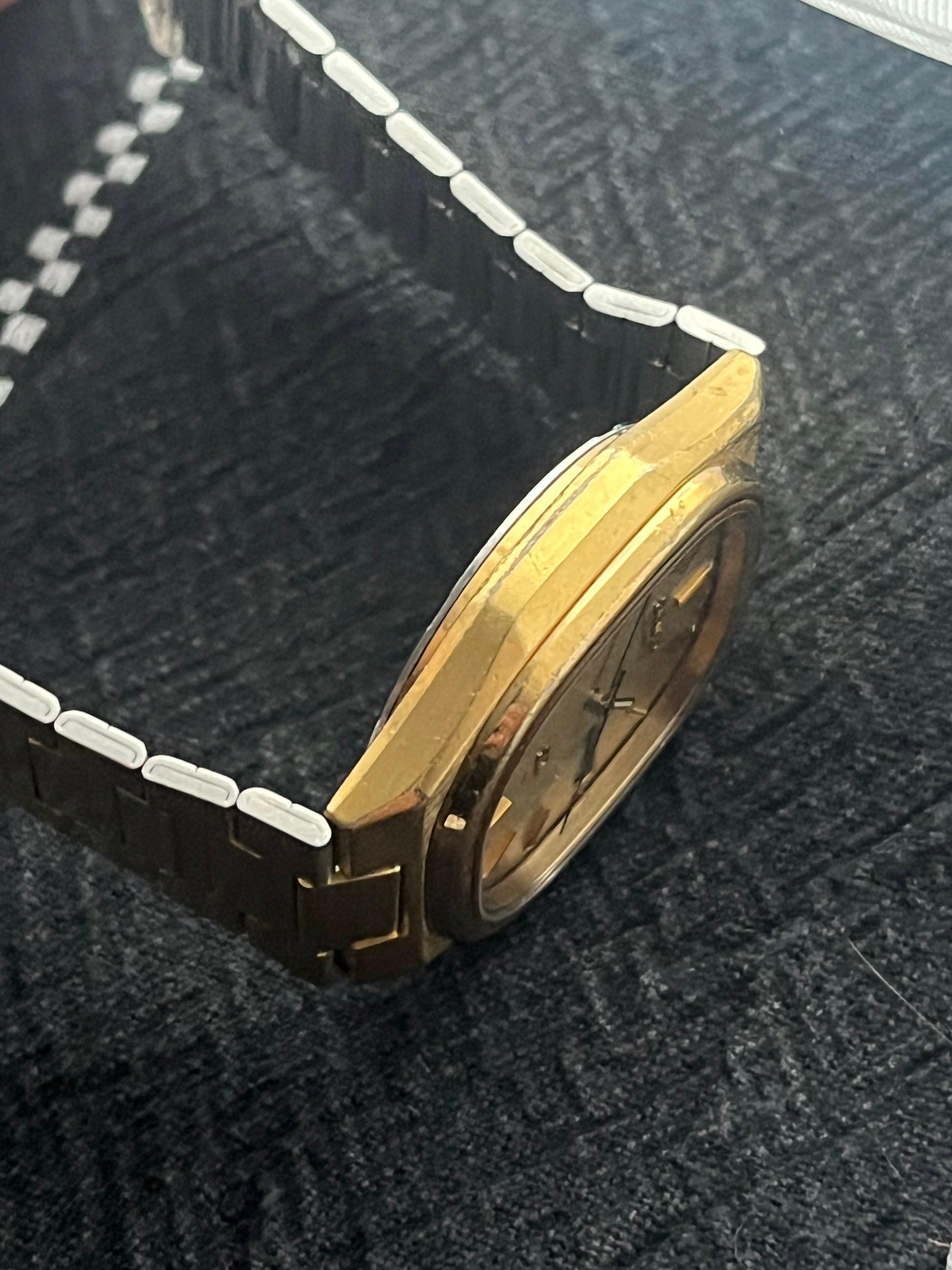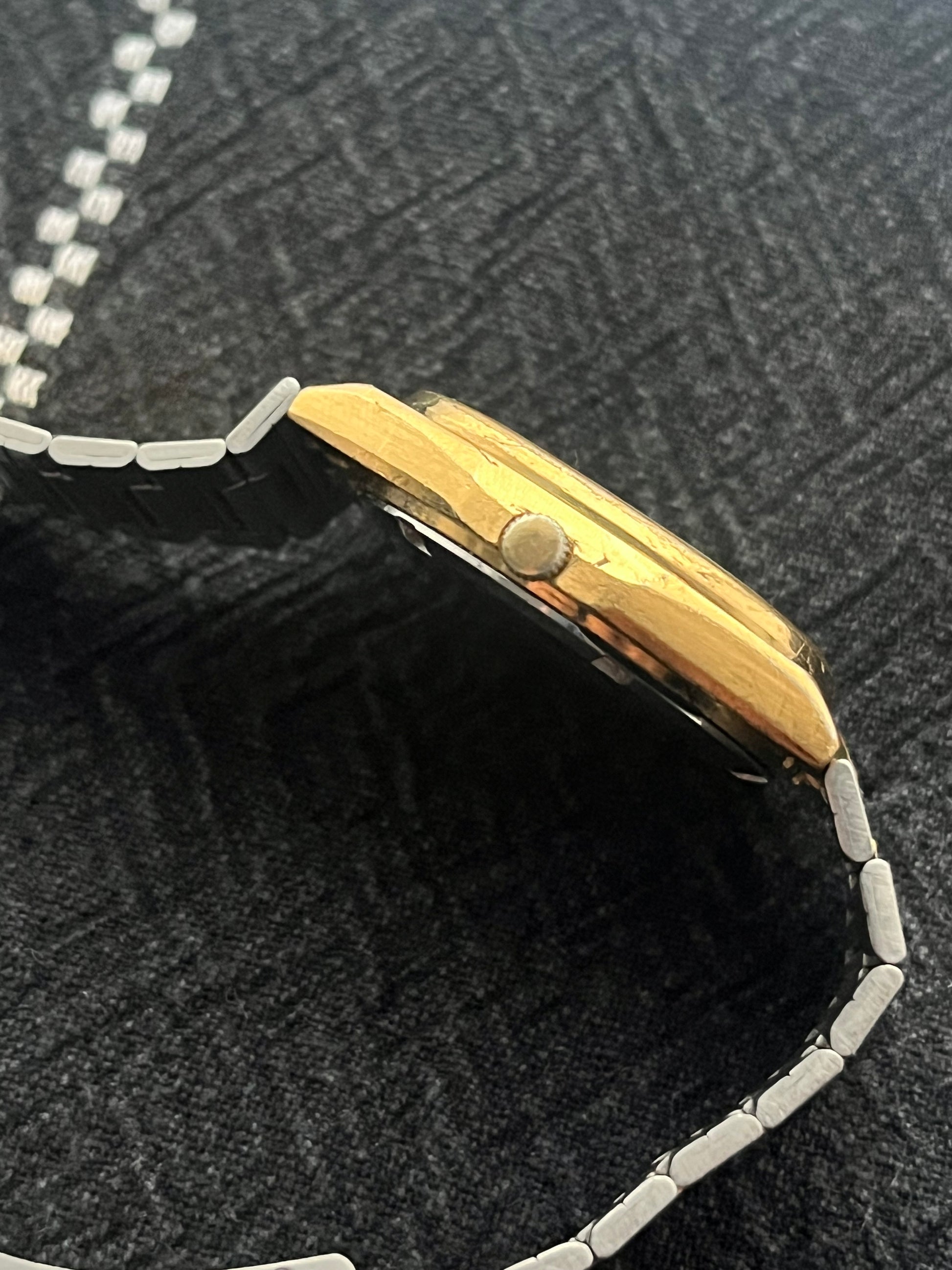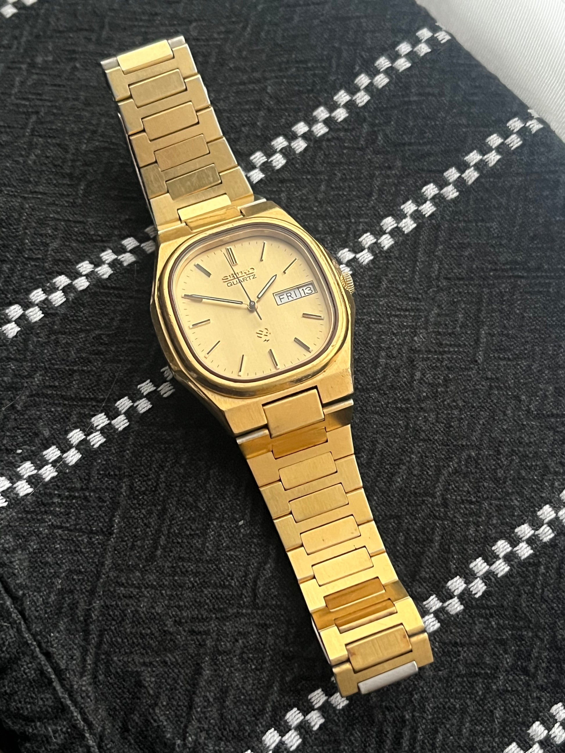 This is a vintage seiko tank model 7126 with the gold plated case & day date window. Produced in 1990. It’s in great condition for a watch of this age .